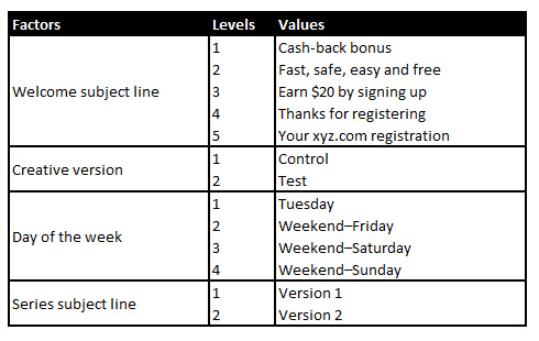 For example, to launch a new series of emails to recently acquired subscribers, you may want to test attributes similar to the following: