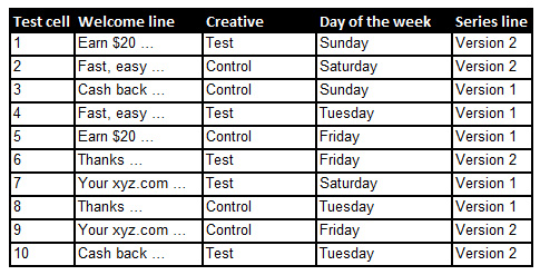 The main point to remember when testing over time is that at least one component of the campaign must remain constant. The constant should be either what you are testing (i.e., creative, subject line or offer) or the group of customers within the test group.