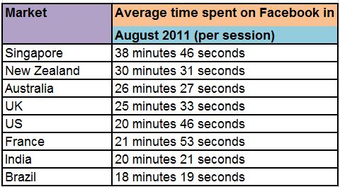 Singaporeans emerged as the global leaders for the longest time spent on Facebook, with an average of 38 minutes and 46 seconds spent per session (Table 1) revealed in an international analysis on the use of social networks conducted by Experian.