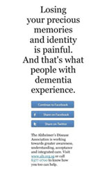 The app was designed to get into ‘the head’ of a person with Alzheimer’s disease to highlight the gradual memory loss they suffer. It is activated when a Facebook user logs in to accept the app. It then launches and gives the appearance of initializing the sorting out process of the user’s content. The user then witnesses his/her Facebook content being slowly ‘erased’; starting with the wall posts, followed by friends list, personal profile and lastly, photographs. On the social media platform however, that process was fast forwarded to create a sense of helplessness and anxiety amongst netizens to help drive awareness of the effects of the illness.